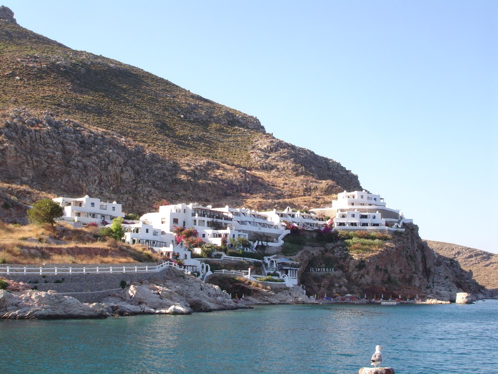 There are two little beaches immediately below, so pre-breakfast swims are easy. The rough path into the village takes less than 10 minutes, but because the apartments are built on the mountainside, access is steep and there are flights of steps leading to the accommodation.